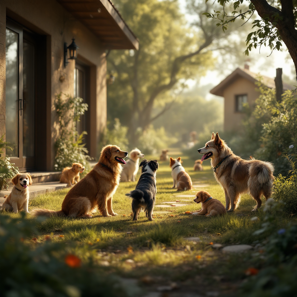 Todos nuestros perros comparten felices la libertad de su espacio al aire libre y al sol.