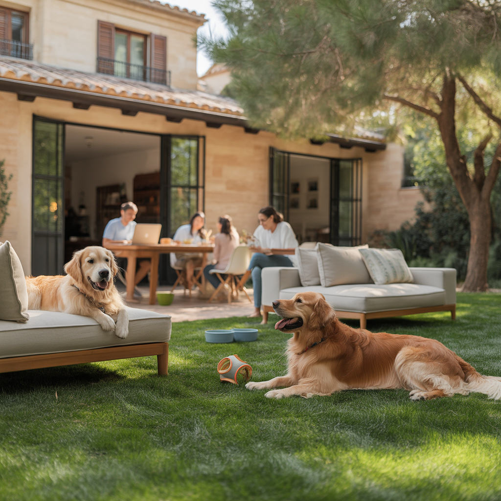Vivimos en una casa unifamiliar de más de 250 m² con una parcela de 2600 m², totalmente adaptada para que tu peludo pueda correr, jugar y descansar libremente mientras tú trabajas o estás de viaje.